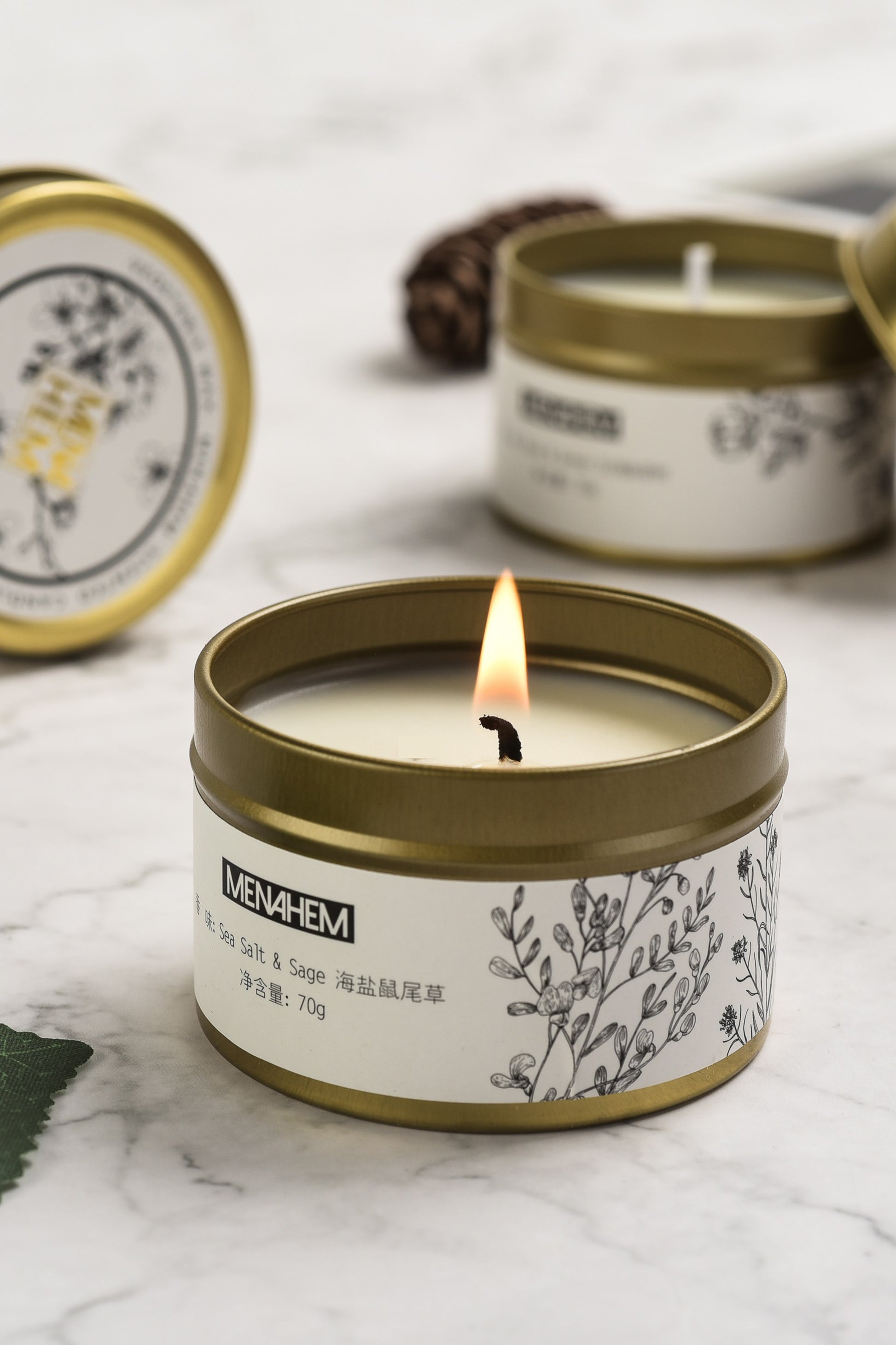 This sleek, chic metal tin candle is made with premium with soy wax. Each tin has straight + smooth sides for a seamless look.